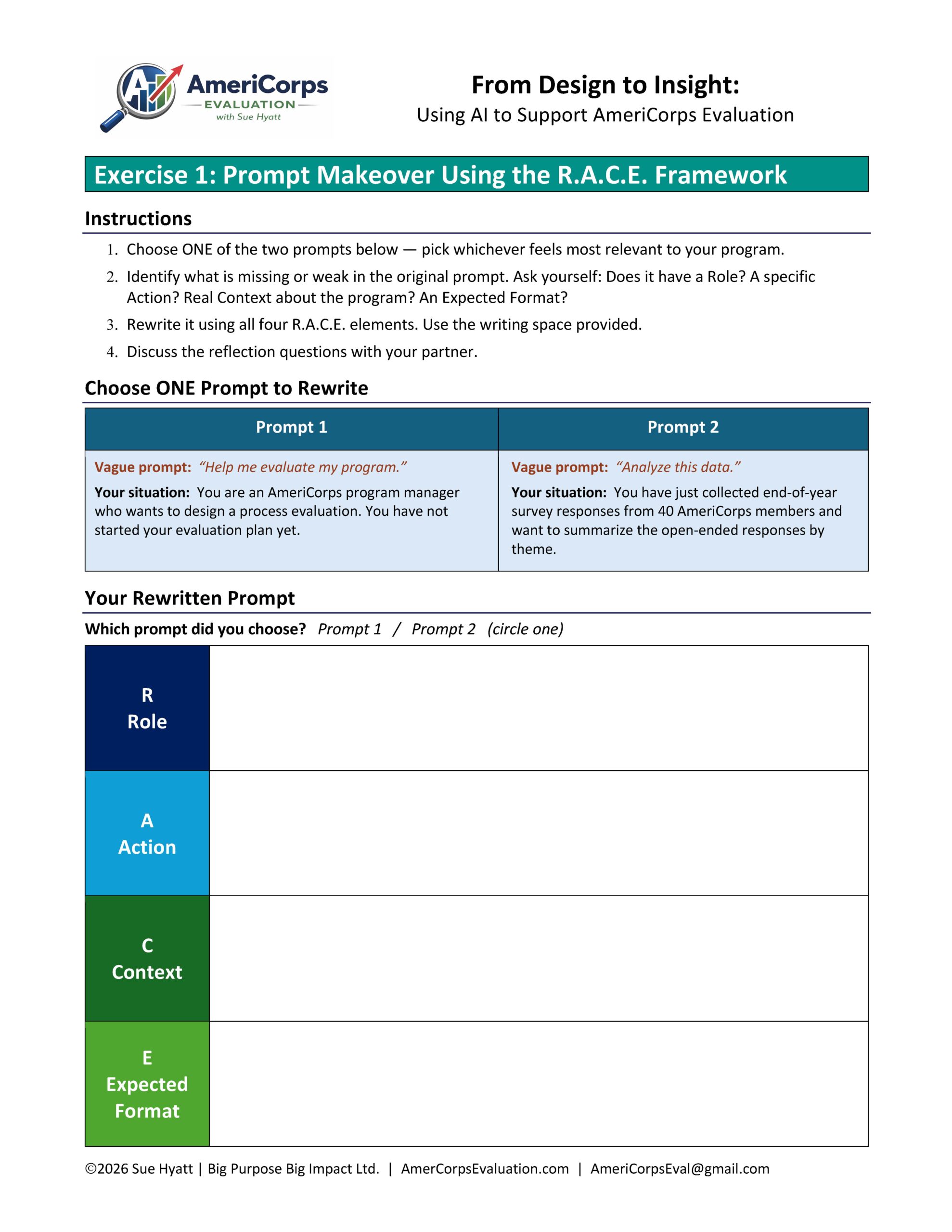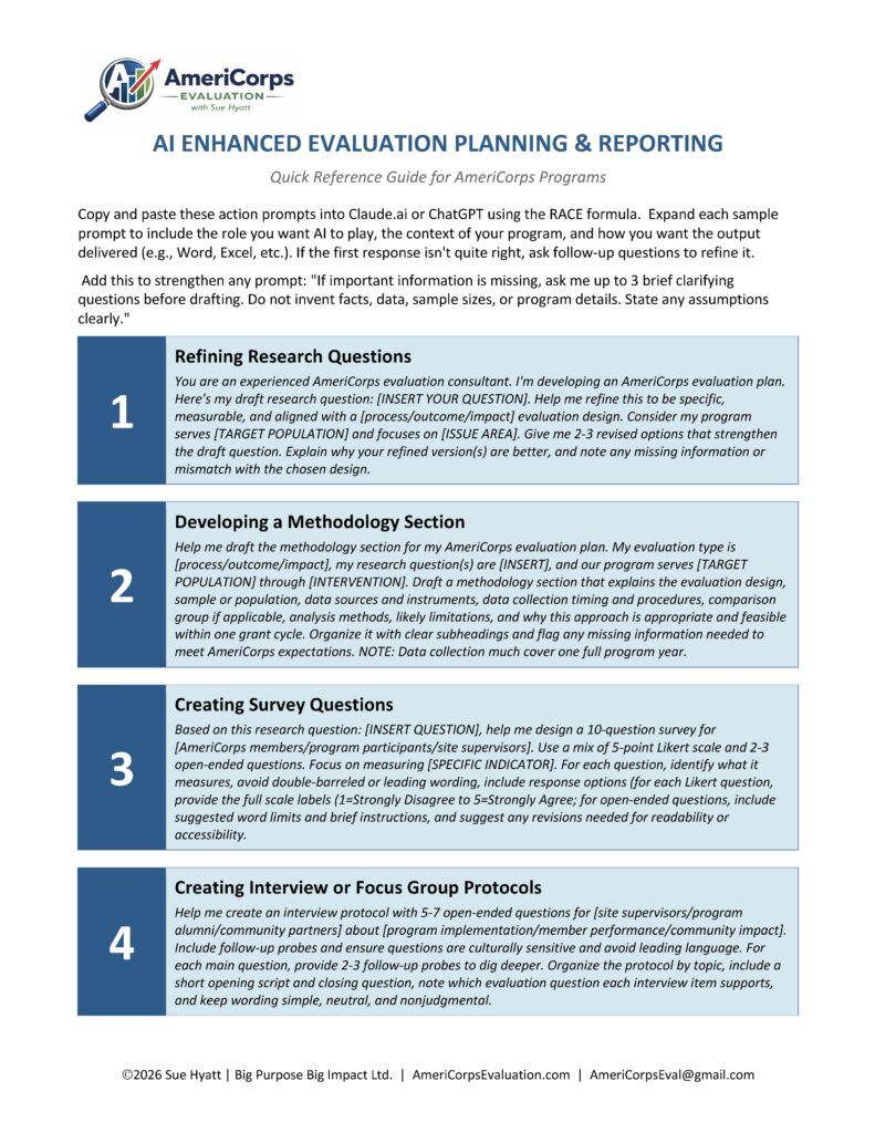 Many of these tools are used in my AmeriCorps trainings and evaluation support engagements nationwide.